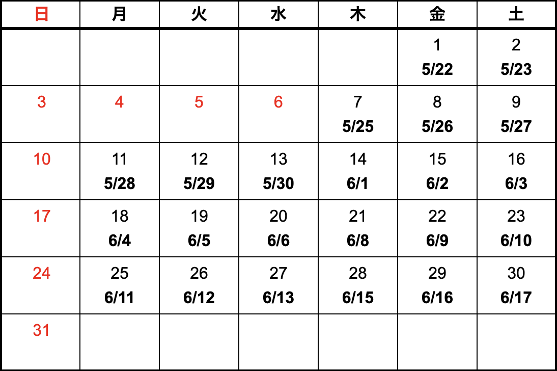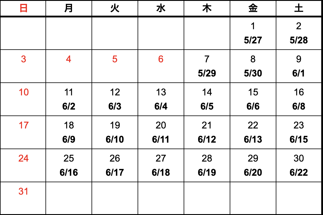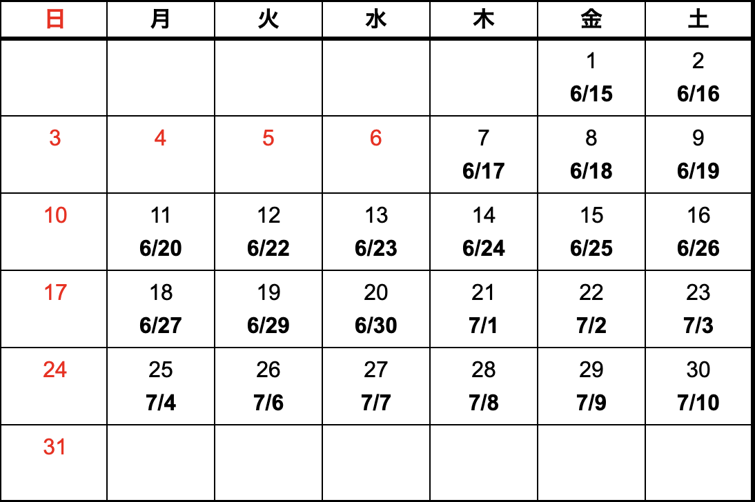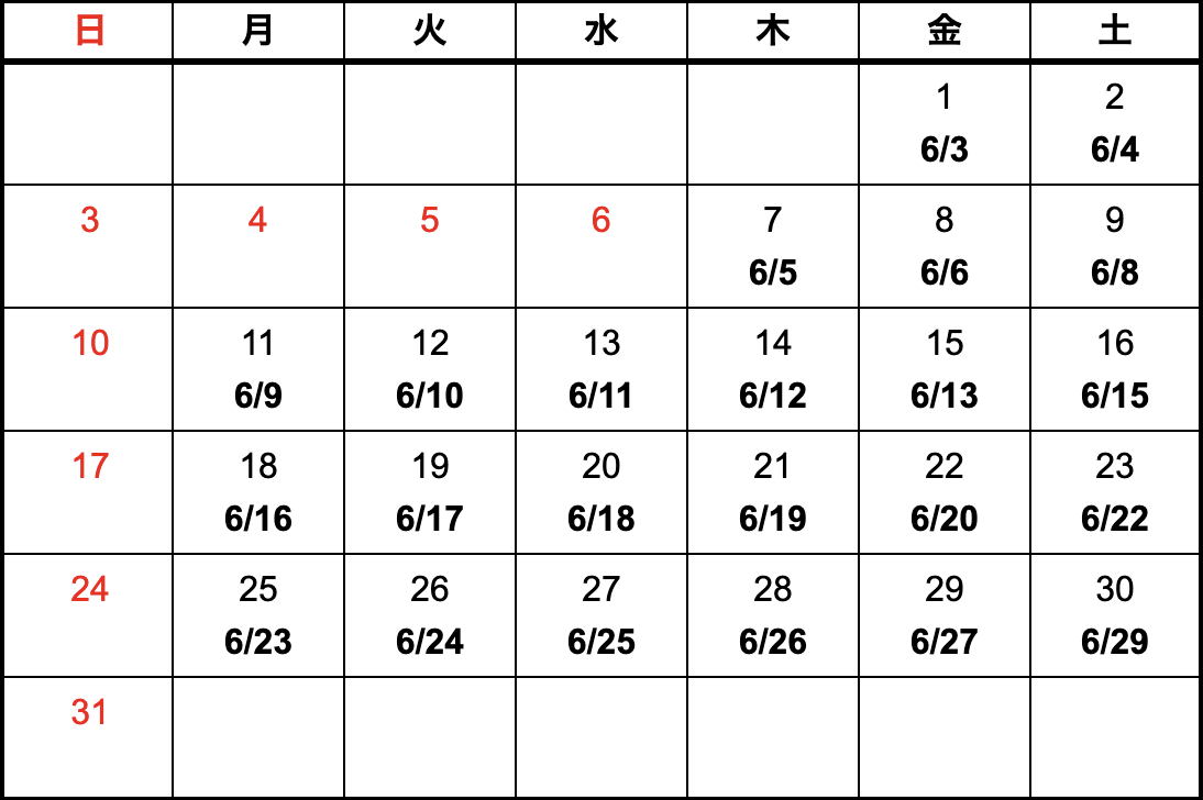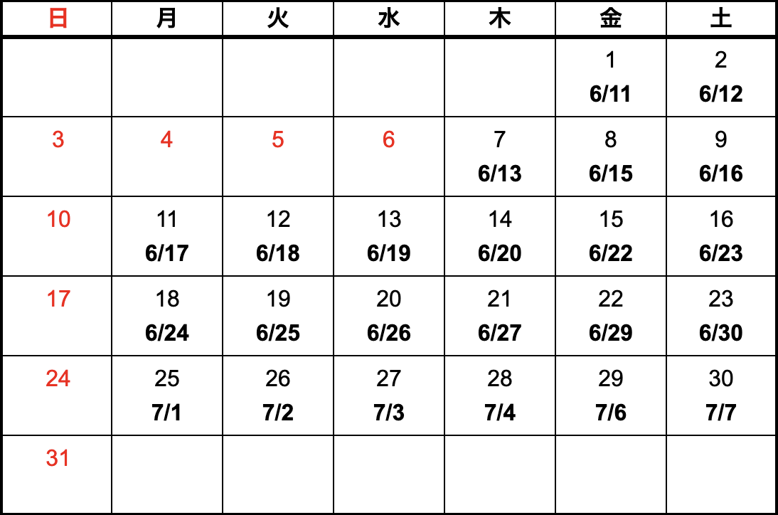 - 上記カレンダーは国内における納期になります。