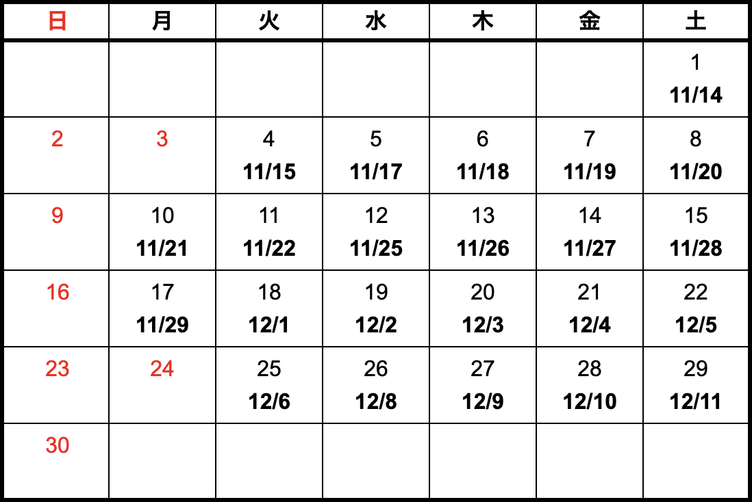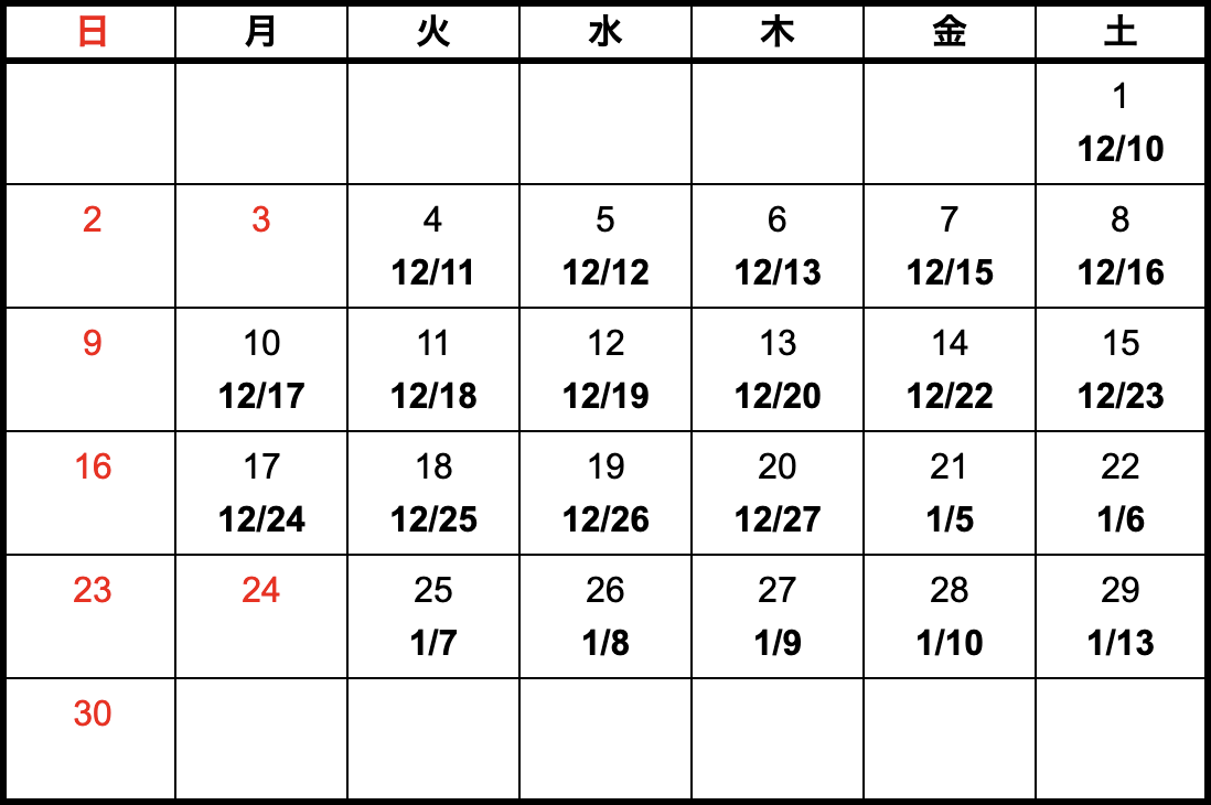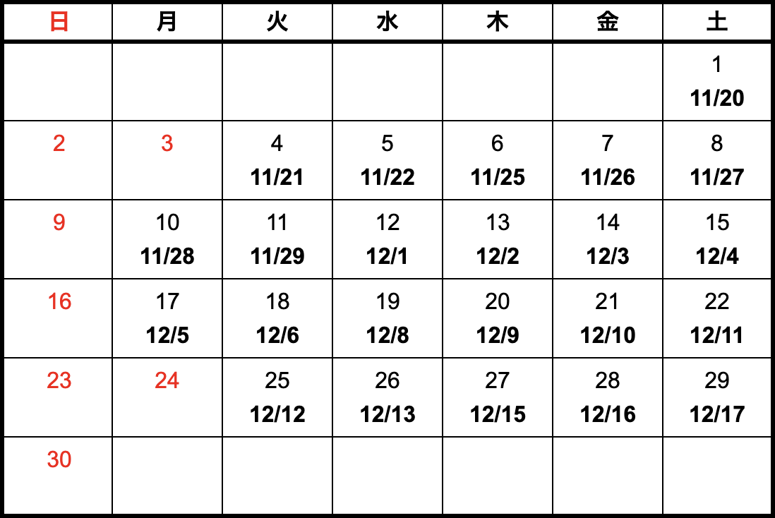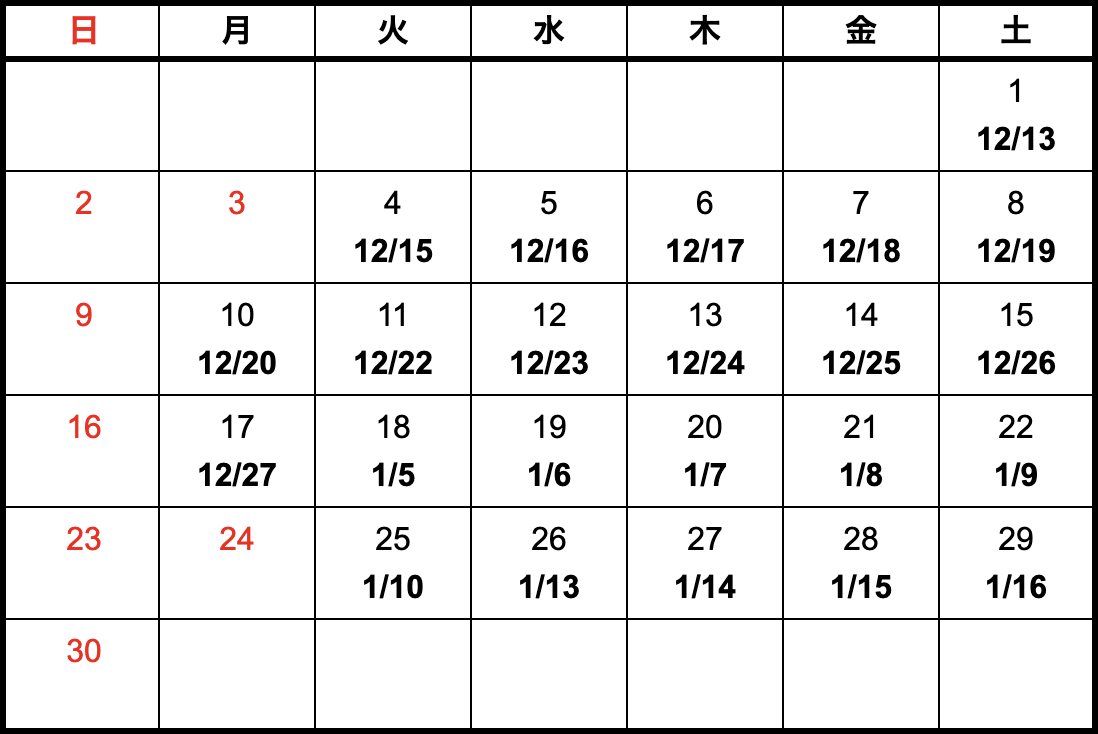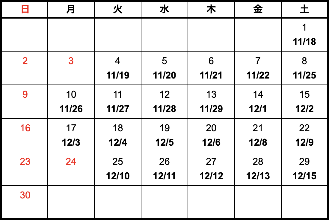 • カレンダー下段に記載している納期より納期短縮をご希望される場合、別途特急料金を申し受けます。(セットアップ、IDBコア製作は納期短縮は承っておりません)