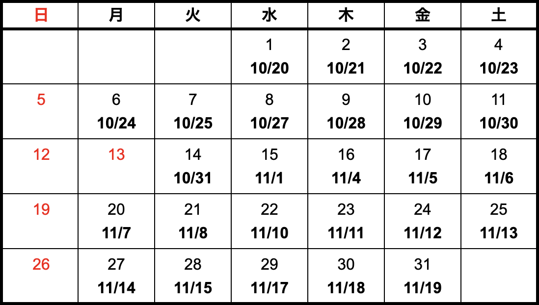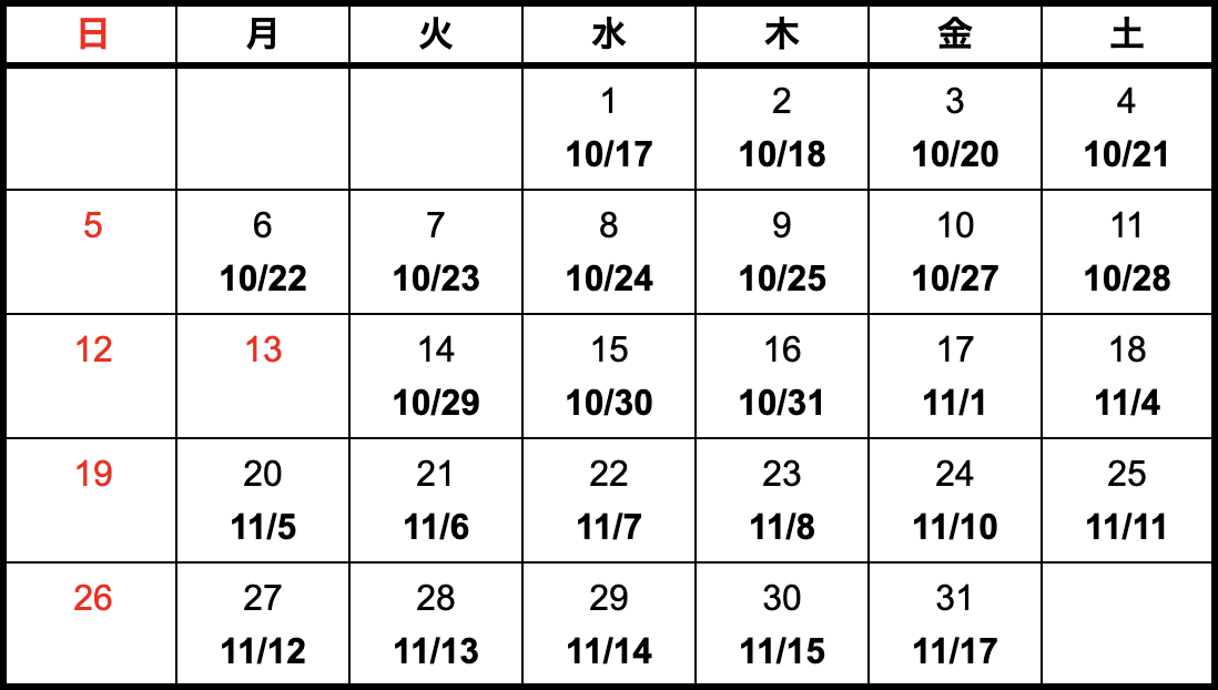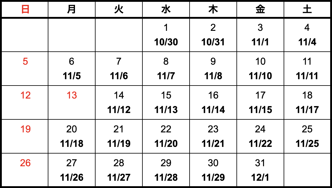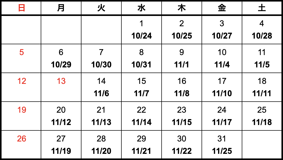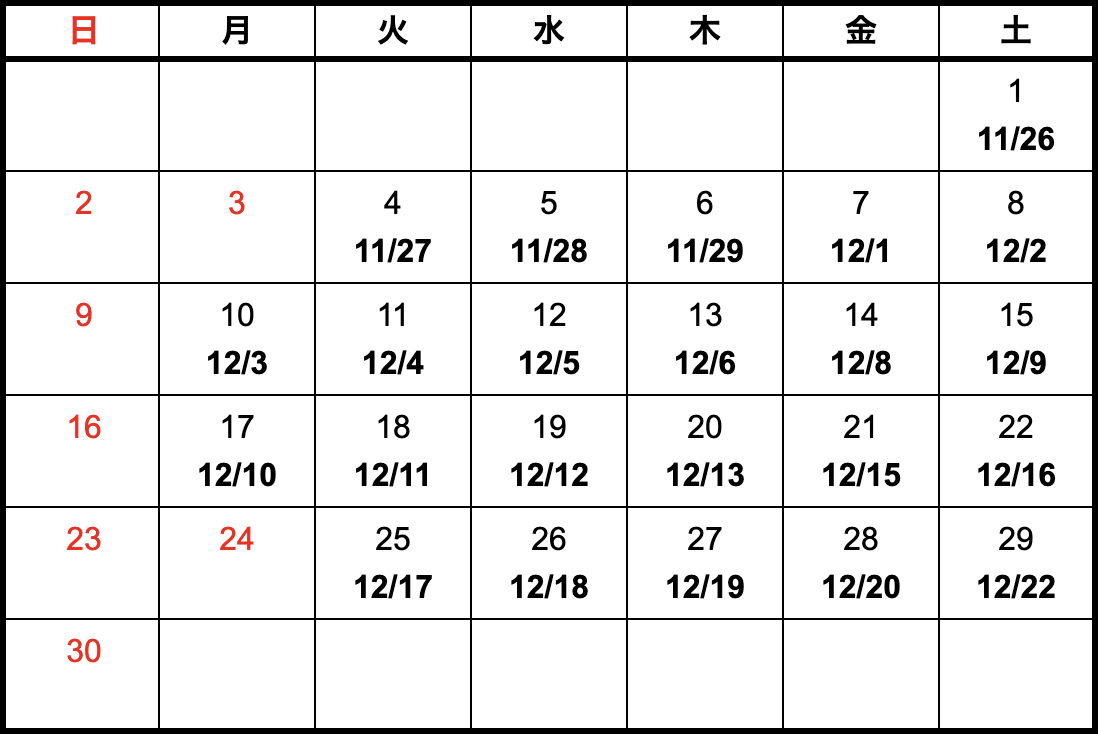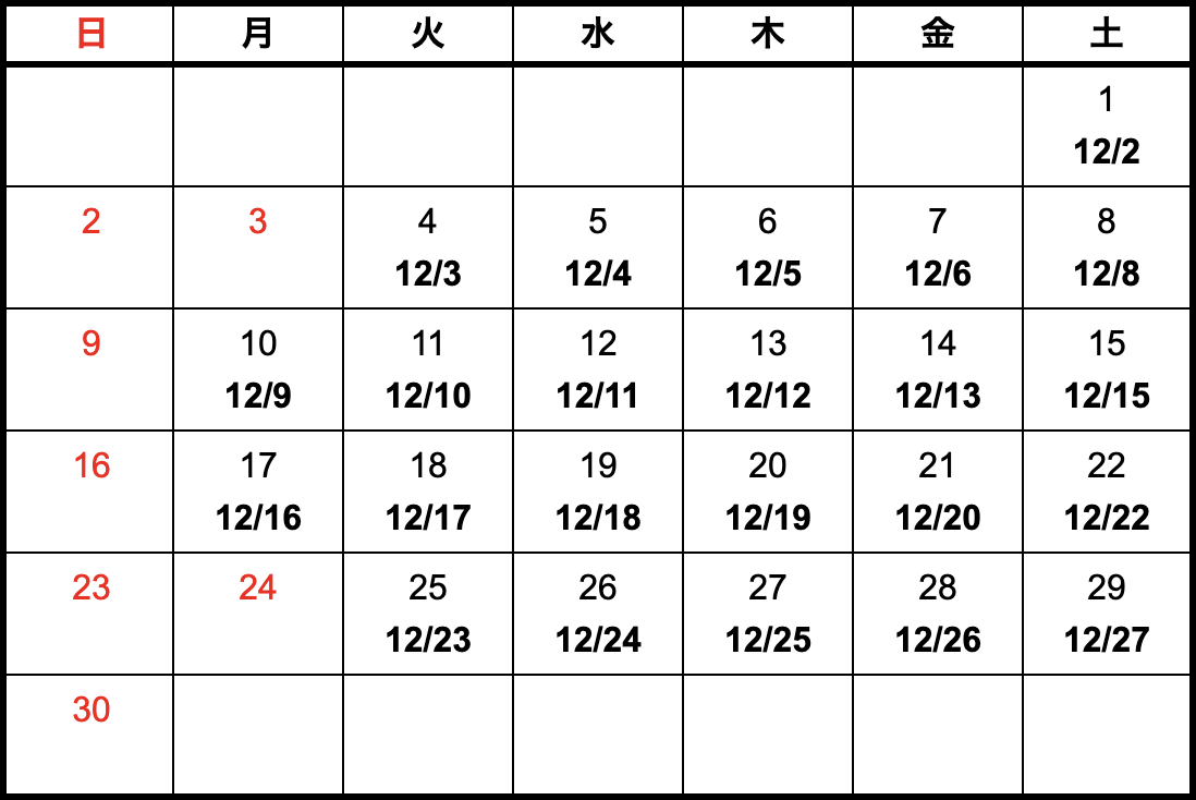 • カレンダー下段に記載している納期より納期短縮をご希望される場合、別途特急料金を申し受けます。(セットアップ、IDBコア製作は納期短縮は承っておりません)