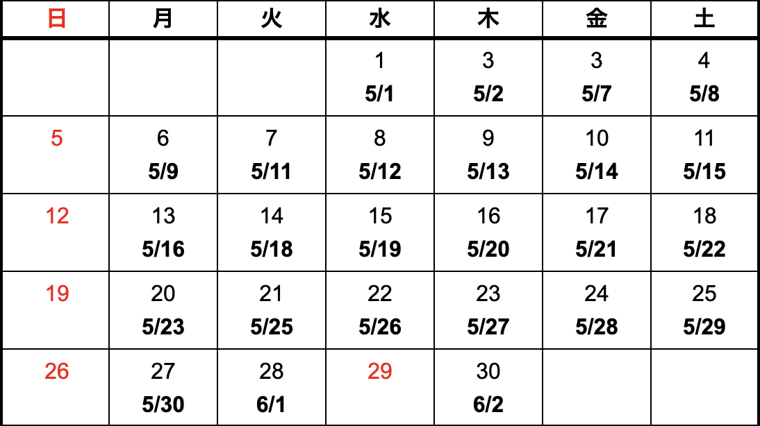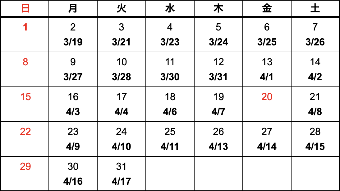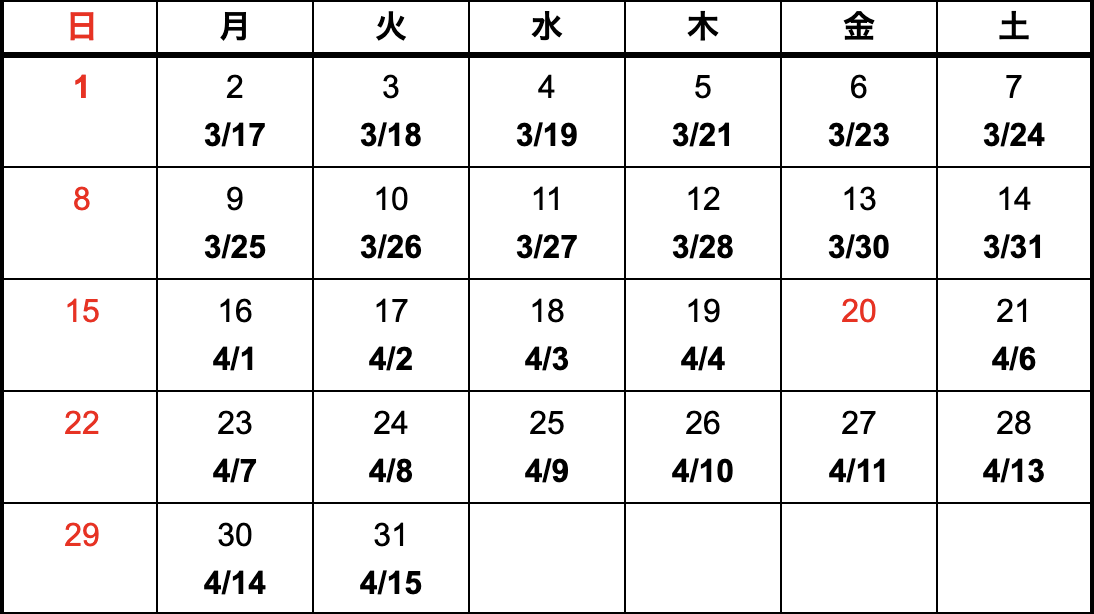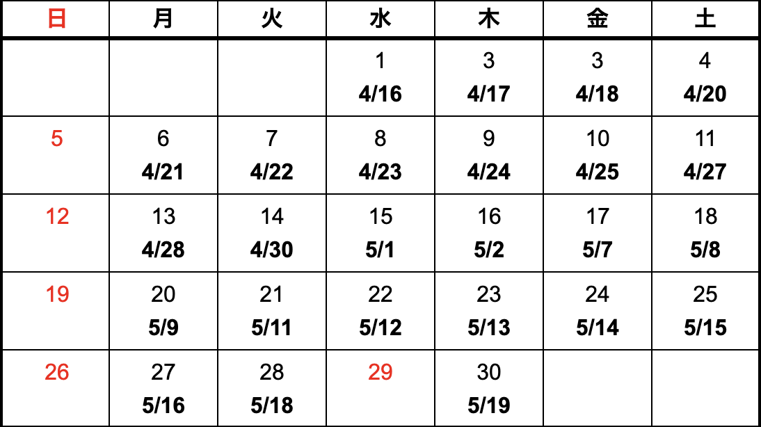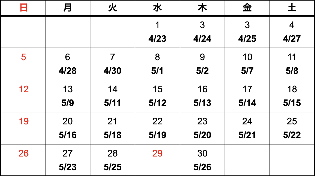- 上記カレンダーは国内における納期になります。