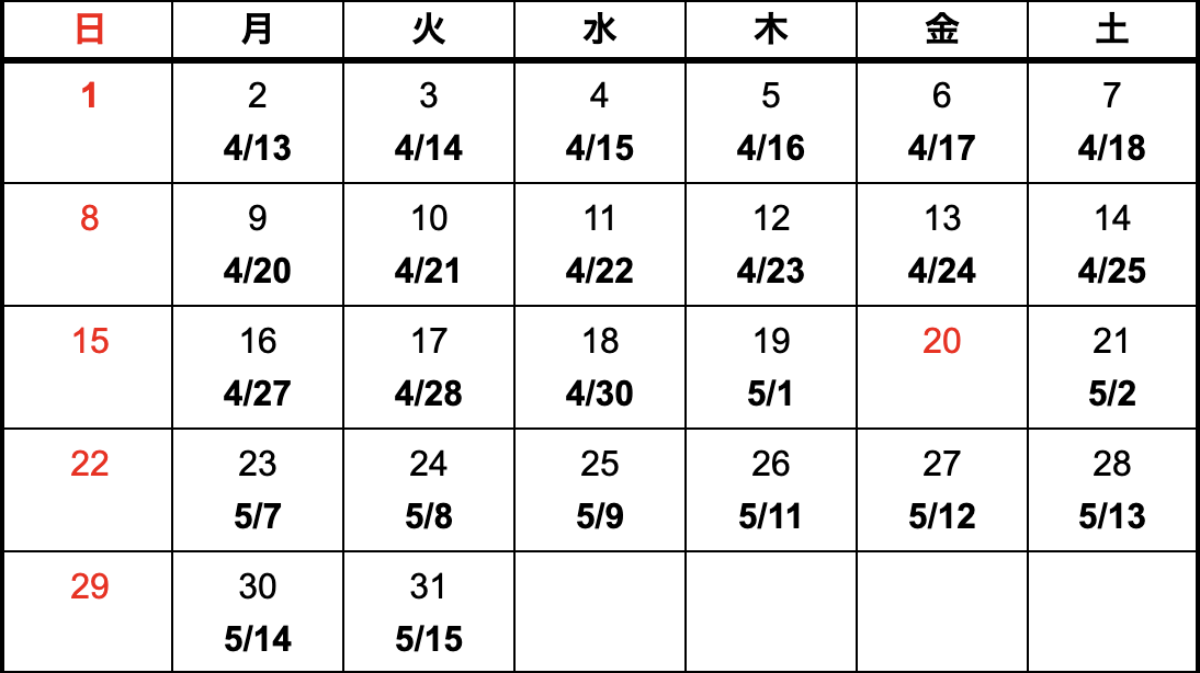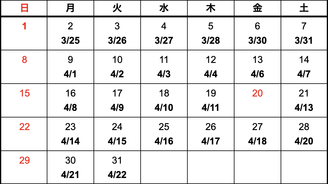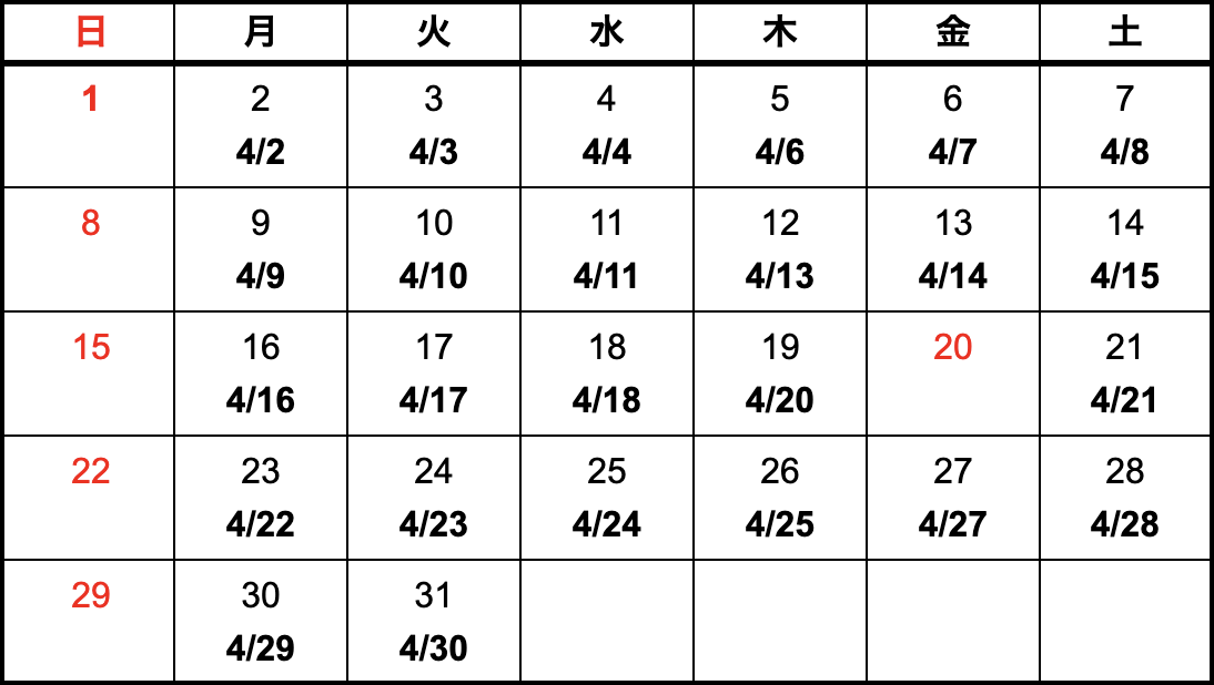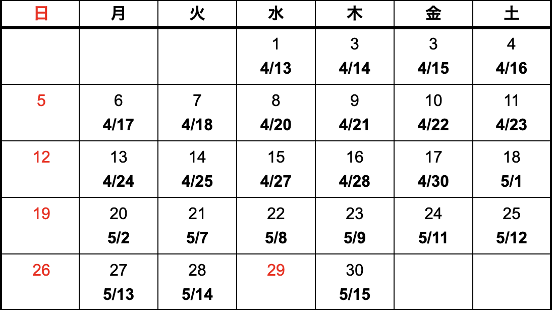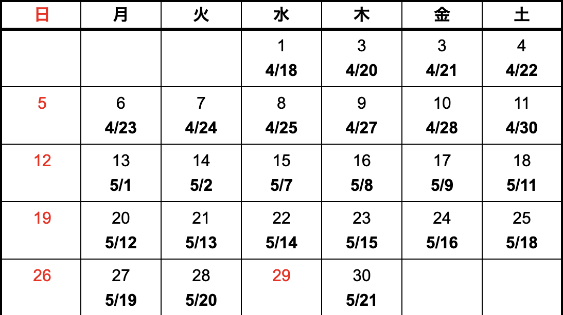- 上記カレンダーは国内における納期になります。